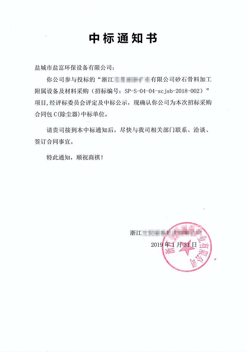 新年歲首,萬象更新。鹽城市鹽富環(huán)保設備有限公司再創(chuàng)佳績,新年開“新”,成功中標浙江某大型企業(yè)砂石骨料除塵器新項目,實現(xiàn)新年“開門紅”!
