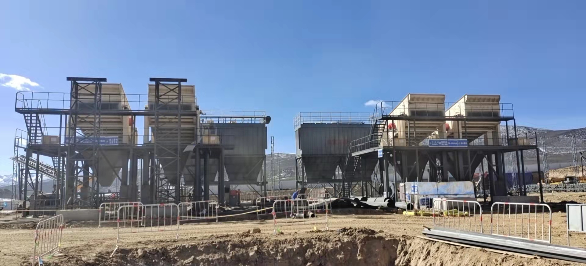該項(xiàng)目位于甘孜州理塘縣,海拔約4300米。砂石廠加工成品骨料生產(chǎn)總量為776萬噸,礦石種類為灰?guī)r。系統(tǒng)干法生產(chǎn),各個(gè)車間全封閉,配套除塵降塵系統(tǒng)。